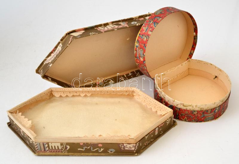 Kozma Lajos által tervezett csokoládés papír dobozok, kis szakadásokkal, 2db, 12x5cm, 25x12x3cm