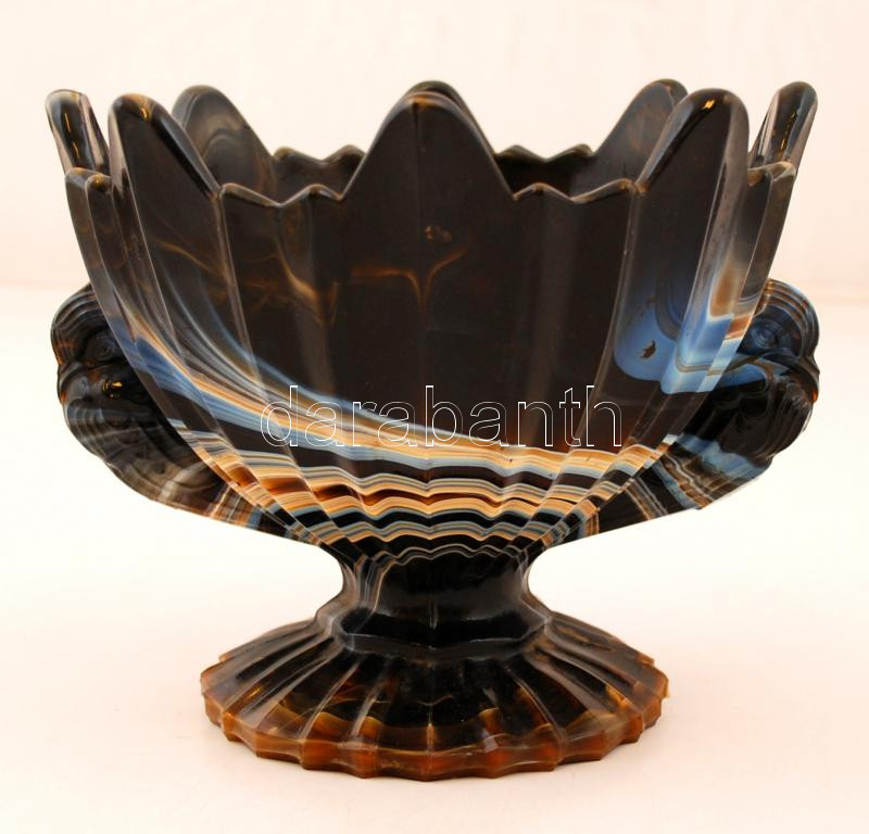 Art deco papagájos achát üveg tál, préselt, jelzés nélkül, hibátlan, 1...