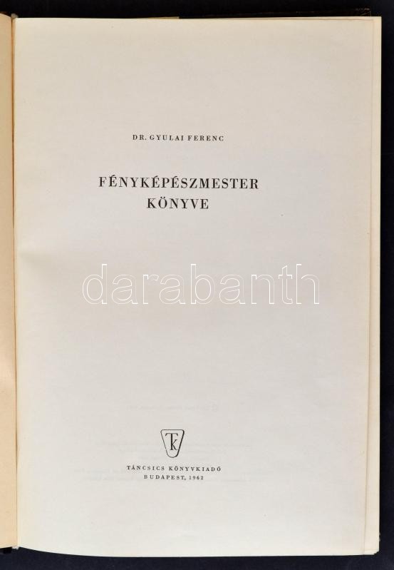 https://www.darabanth.com/en/269-Online-auction/269.0/Other-collectibles/Literature-about-photography~23/Gyulai-Ferenc-Fenykepeszmester-konyve-Bp-1962-Tancsics-Konyvkiado-Kopott-gerincu-felv~II1348831