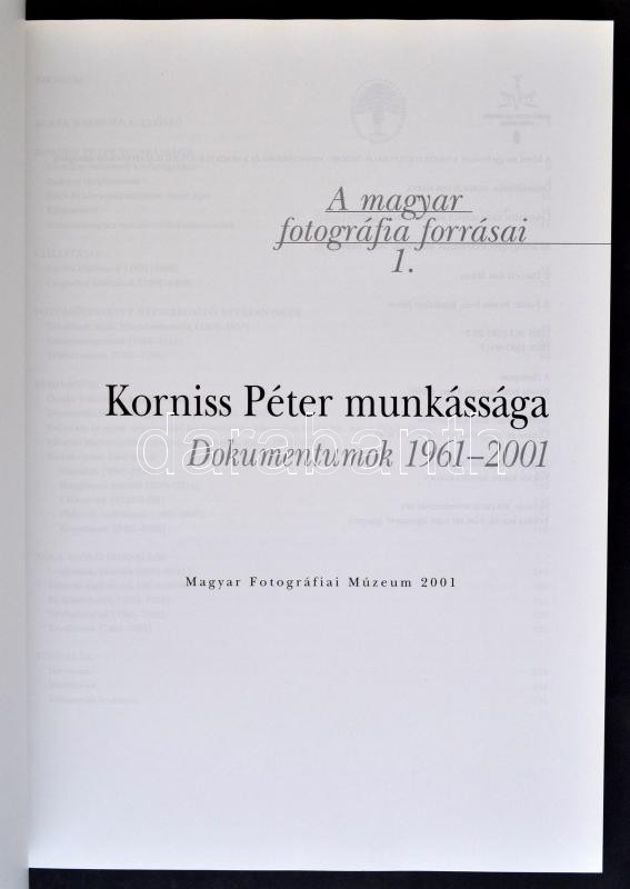 Description: Korniss Péter munkássága. Dokumentumok 1961-2001. Összeáll.: Daróczi Kiss Márta. Bp., 2001, Magyar Fotográfiai Múzeum (A magyar fotográfia forrásai 1.). Papírkötésben, jó állapotban.