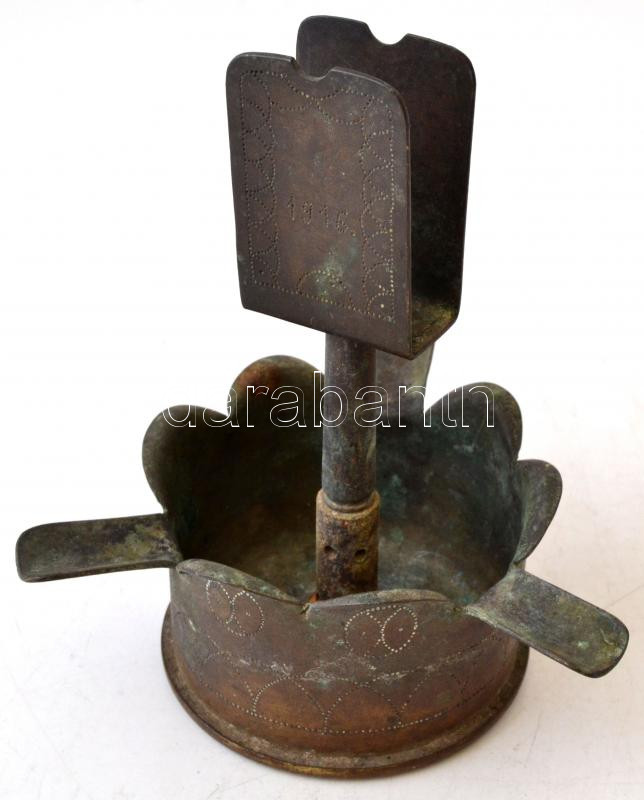 II. világháborús ágyúhüvelyből készült asztali gyufatartó, 16x13cm