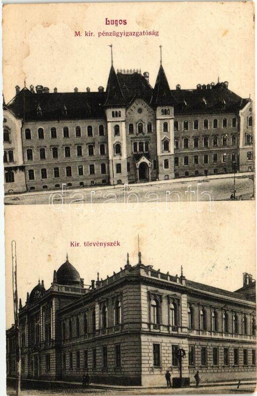 Lugos, Lugoj; M. kir. pénzügyigazgatóság, Kir. törvényszék, kiadja Sziklai Lajos / financial directorates, court (fl)