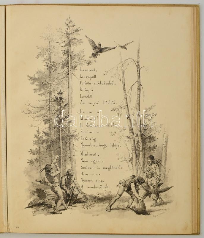 Arany János balladái. Zichy Mihály rajzaival. Budapest, 1896. Ráth Mór. Kiadói, dombornyomásos, rendkívül díszes és dúsan aranyozott egészvászon díszkötésben, aranyozott lapélekkel, a táblák és a címlevelek előtt védő hártyapapír, a borító alsó két sarka kissé kopott, a borító háta kissé foltos, de alapvetően jó állapotban. Arany János balladái Zichy Mihály illusztrációival e díszkiadásban összesen négy, egyenként önálló kötetben jelentek meg. Példányunk a sorozat 1. kötete, tartalmazza a "Ágnes asszony", "Ötödik László", "Mátyás Anyja", "Tetemre hívás", "Bor vitéz", "A Walesi Bárdok" című balladát. Zichy Mihály három egészoldalas és szövegközti illusztrációval.