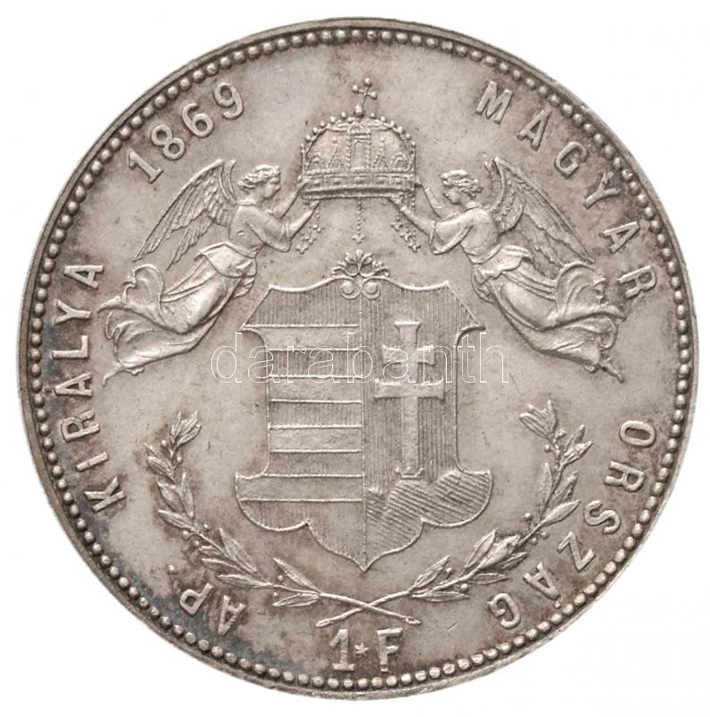 https://www.darabanth.com/en/27-Major-auction/27.1/Numismatics/Hungarian-coins-and-coins-with-Hungarian-mint-marks~10897/1869GYF-1Ft-Ag-Ferenc-Jozsef-Angyalos-cimer-Gyulafehervar-12-37g-T1-2-Hungary-1869GYF-~II1567407