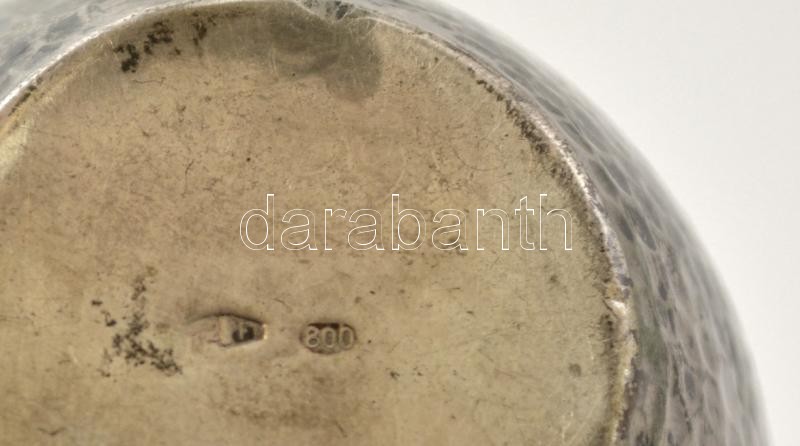 Poncolt ezüst (Ag.) váza, plasztikus virág rátéttel, jelzett, m:7,5 cm, nettó: 57 g / Silver vase with hallmark
