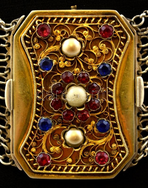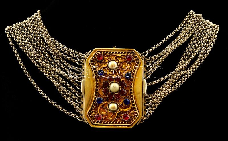 cca 1850 ezüst (Ag.) biedermeier nyakdísz aranyozott filigrán közép ré...