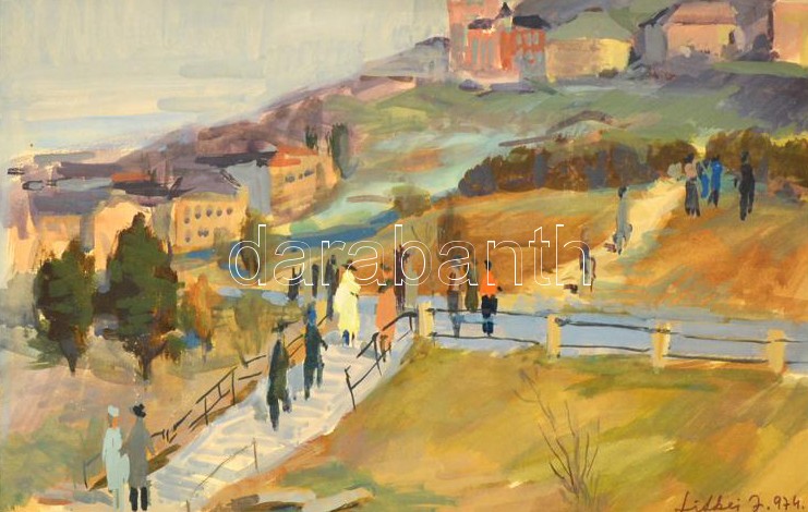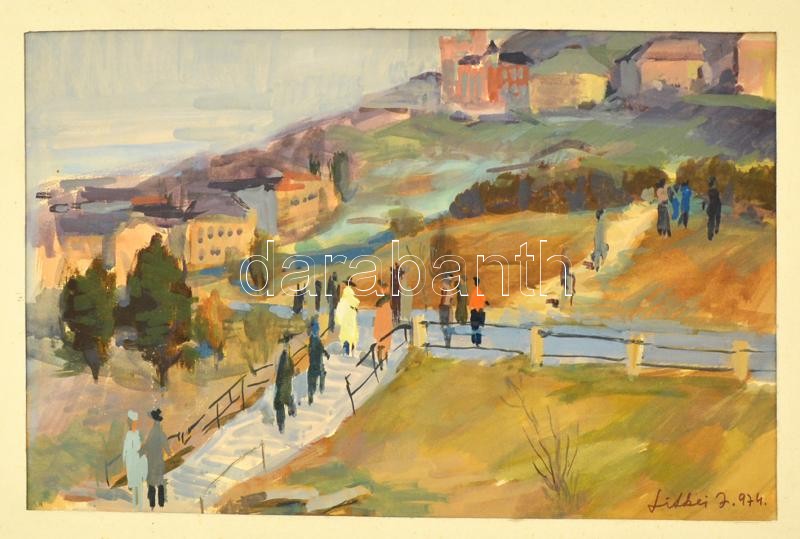 Litkei József (1924-1988): Budai lépcsősor 1974. Tempera, papír, jelze...