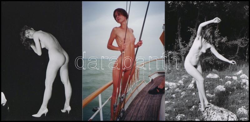 Description: cca 1977 Szépleányok, szépasszonyok ruha nélkül, 44 db szolidan erotikus fénykép, korabeli negatívokról készült mai nagyítások, 9x13 cm / 44 erotic photos, 9x13 cm