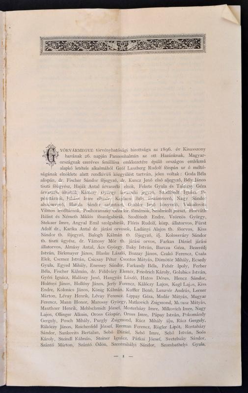 1896 Győrvármegye Törvényhatósági Bizottságának Pannonhalmán az Ország... https://www.darabanth.com/en/27-Major-auction/27.1/Other-collectibles/Printed-Materials~10906/1896-Gyorvarmegye-Torvenyhatosagi-Bizottsaganak-Pannonhalman-az-Orszagos-Ezredeves-Emlek~II1585664