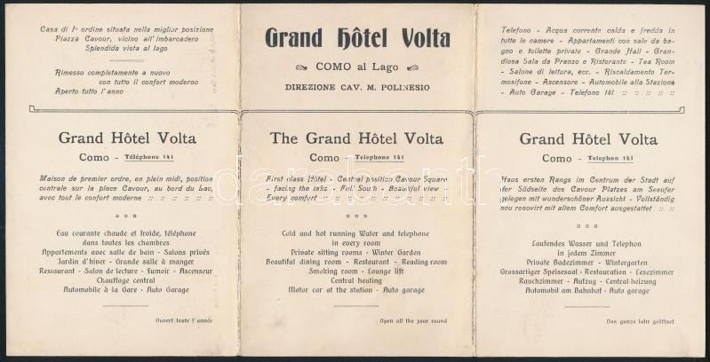 cca 1910 A Grand Hotel Volta, Comóban. Háromrészes képes ismertető. sz...