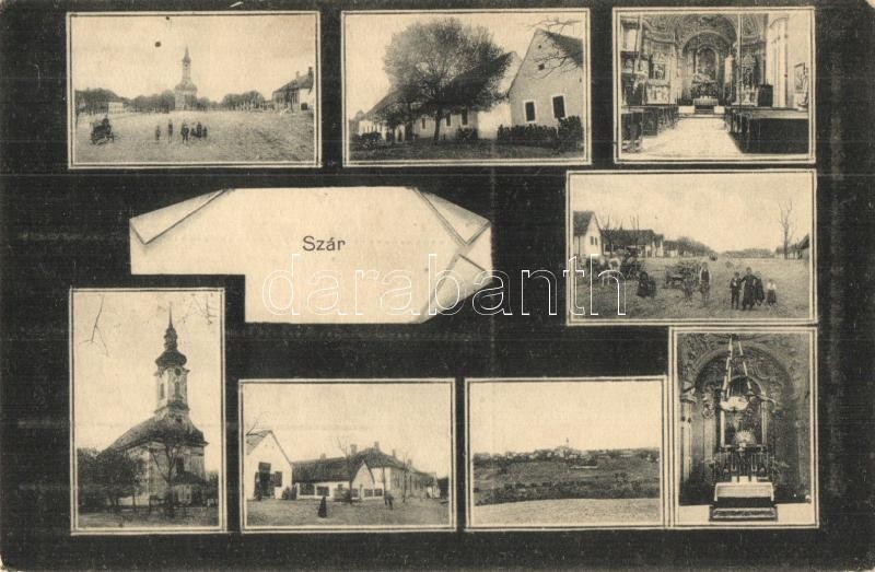 Szár, községháza, Hangya szövetkezet üzlete, templom belsők, utcaképek