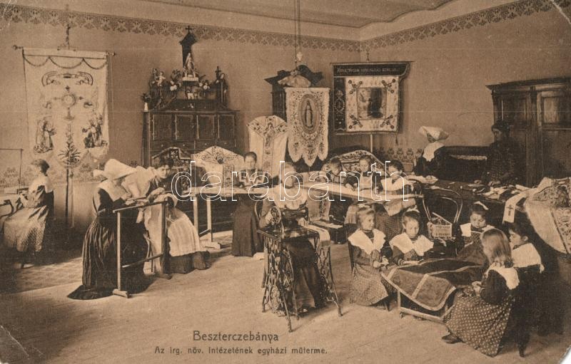 Besztercebánya, Banska Bystrica; Az irgalmas nővérek intézetének egyházi műterme. Machold F. kiadása / girl school, workshop, interior (EM)