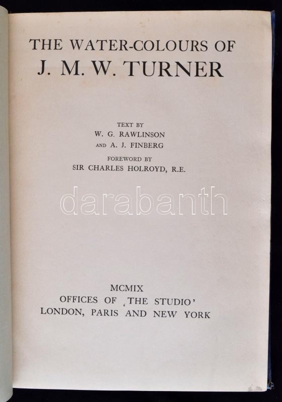 W.G. Rawlinson - A.J. Finberg: The water-colours of J.M.W. Turner. 190... https://www.darabanth.com/en/270-Online-auction/270.0/Books/Books-Architecture-Art~21/WG-Rawlinson--AJ-Finberg-The-water-colours-of-JMW-Turner-1909-The-Office-Kiadoi-eges~II1362837