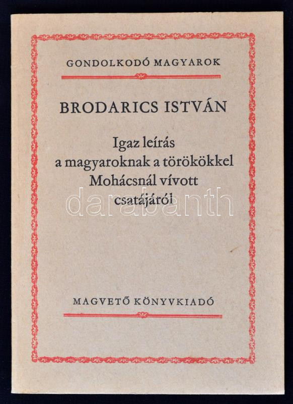 Brodarics István: Igaz leírás a magyaroknak a törökökkel Mohácsnál vív... https://www.darabanth.com/en/270-Online-auction/270.0/Books/Books-History~15/Brodarics-Istvan-Igaz-leiras-a-magyaroknak-a-torokokkel-Mohacsnal-vivott-csatajarol-Go~II1362913