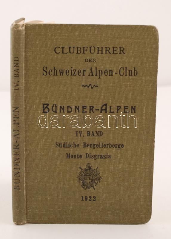 Description: Clubführer durch die Bündner-Alpen. 4. köt.: Die südlichen Bergellerberge und Monte Disgrazia. Összeáll.: Rütter, H. Zürich, 1922, F. Schuler Buchhandlung. Átnézeti térképekkel. Vászonkötésben, a gerincén kis kopásnyomokkal, egyébként jó állapotban.