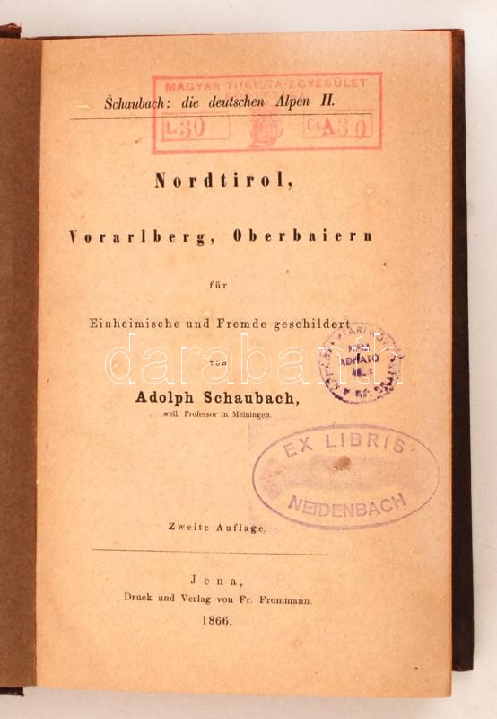 Description: Schaubach, Adolph: Die deutschen Alpen. 2. köt.: Nordtirol, Vorarlberg, Oberbaiern. Jena, 1866, Fr. Frommann. Kopott vászonkötésben, egyébként jó állapotban.