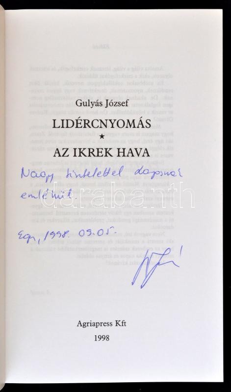 https://www.darabanth.com/en/270-Online-auction/270.0/Books/Books-Other-rarities~43/Gulyas-Jozsef-Lidercnyomas-Az-ikrek-hava-Eger-1998-Agriapress-Kft-Ragasztott-papir-91-p~II1360656