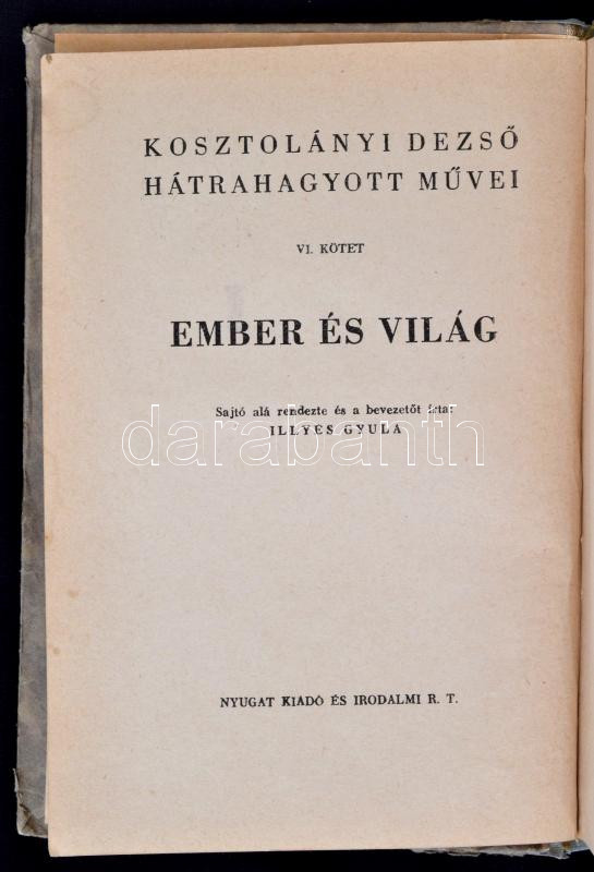 Kosztolányi Dezső: Ember és világ. Kosztolányi Dezső Hátrahagyott műve... https://www.darabanth.com/en/270-Online-auction/270.0/Books/Books-Other-rarities~43/Kosztolanyi-Dezso-Ember-es-vilag-Kosztolanyi-Dezso-Hatrahagyott-muvei-VI-Budapest-EN-~II1361541