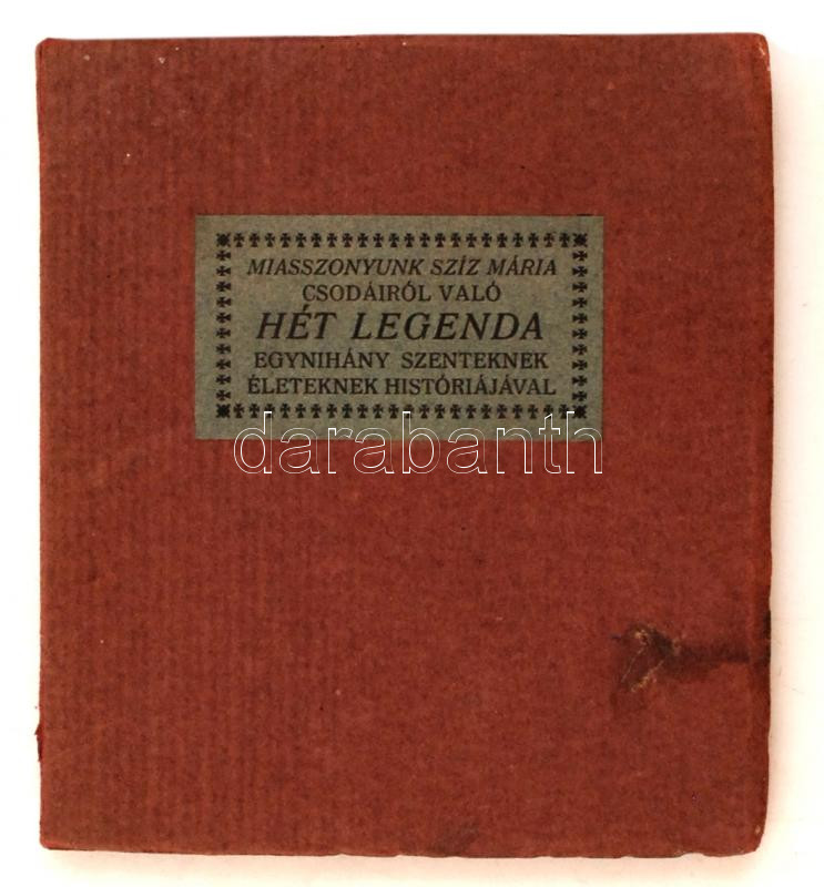 Az Miasszonyunk Szíz Mária csodáiról való Hét Legenda mellyeket egynih... https://www.darabanth.com/en/270-Online-auction/270.0/Books/Books-Religion~33/Az-Miasszonyunk-Sziz-Maria-csodairol-valo-Het-Legenda-mellyeket-egynihany-szenteknek-eletekn~II1367128