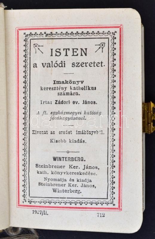 Zádori ev. János: Isten a valódi szeretet. Imakönyv. Kiadói, illusztrált, csatos, bakelit kötésben. Budapest, 1927, Winterberg