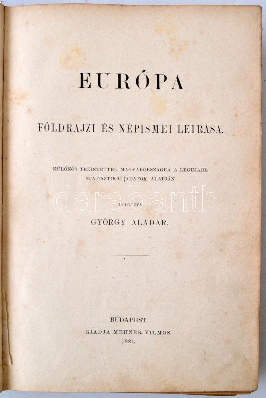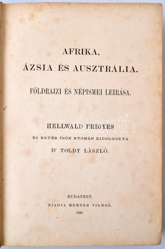 A föld és népei I-III. Föld és Népismei Kézikönyv. Hellwald Frigyes és egyéb írók nyomán kidolgozta Dr. Toldy László. Előszőval bevezette: Dr. Hunfalvy János. I. Észak-, Közép és Dél-Amerika földrajzi és népismei leírása. II. Afrika, Ázsia és Ausztrália földrajzi és népismei leírása. III. Európa földrajzi és népismei leírása. Különös tekintettel Magyarországra a legujabb statisztikai adatok alapján dolgozta György Aladár. Budapest, 1887-1880-1881, Méhner Vilmos. Egységes, festett, dúsan aranyozott kiadói egészvászon kötés, márványozott lapélekkel, [4] + VIII + 722 + IV p. ; 672 p.; VIII + 9-656 p. Térképmellékletekkel, gazdag szövegközti, és egészoldalas képanyaggal. I. kötet borítója foltos, kopott, sérült. A kötése sérült, viseltes és restaurálásra szorul. A könyvből pár lap kijár és egy egészoldalas kép hiányzik. II. kötet borítója némileg kopott.A könyvből pár lap kijár és két egészoldalas kép hiányzik. III. kötet borítója kopott, sérült. A kötése sérült, viselte és javításra szorul. A könyvből pár lap kijár. A térképmellékletek a könyv végén megvannak, de pár közülük kijár.
