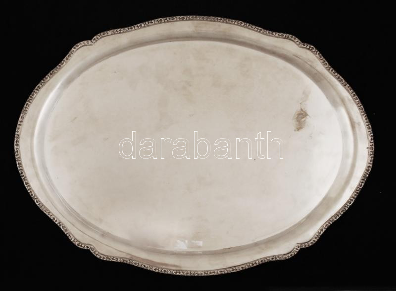 Ezüst (Ag.) óvális tálca, jelzett, mesterjeggyel, apró hibával 51×37 cm, nettó:1396 g