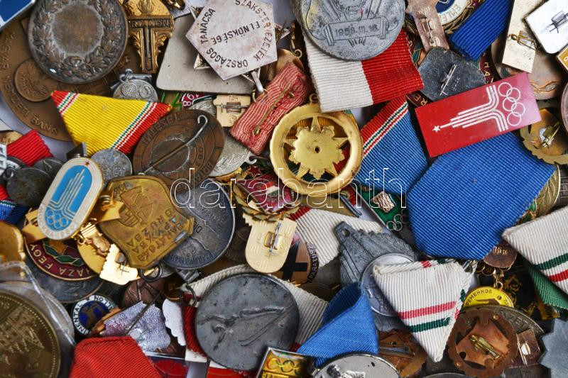 Description: Vegyes kitüntetés, jelvény és érem tétel ~2,4kg-os súlyban, benne sok sport témában T:vegyes