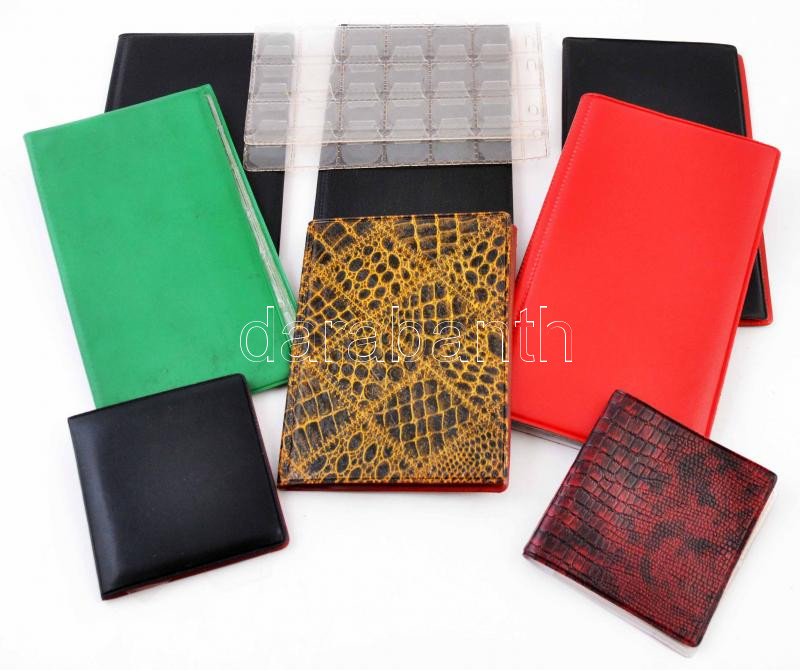 8db-os használt érmeberakó tétel, különböző méretű érmetartó zsebekkel, összesen 34 oldallal, megkímélt állapotban