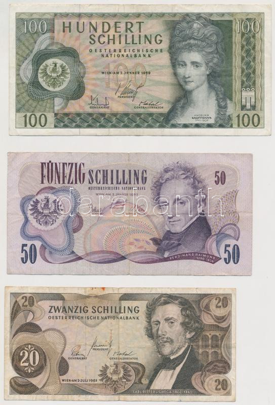 Ausztria 1956. 20Sch + 1967. 10Sch (2x) + 1969. 100Sch + 1970. 50Sch T...