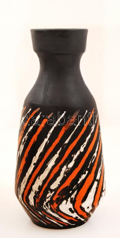 Gorka Lívia (1925-2011): Csíkos váza. Festett mázas kerámia, apró gyár...