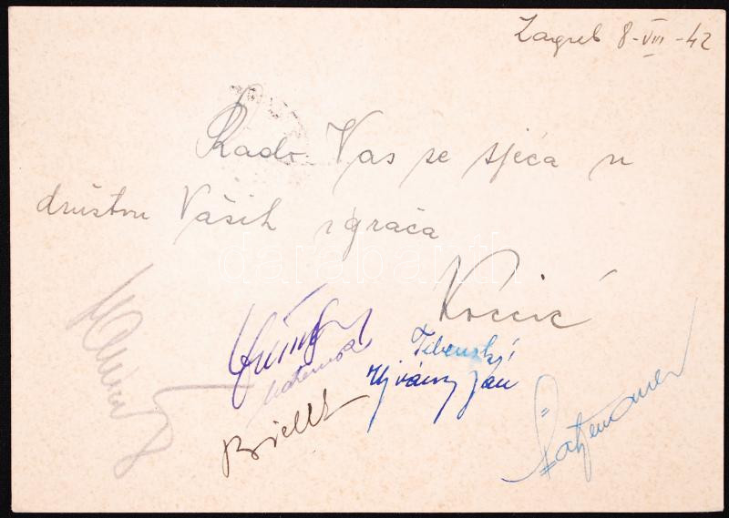 Description: 1942 S.K. ASO BRATISLAVA Fotbalovy Odbor - Pozsonyi focicsapat tagjai által aláírt képeslap Horvátországból postázva / Bratislava football team signed postcard