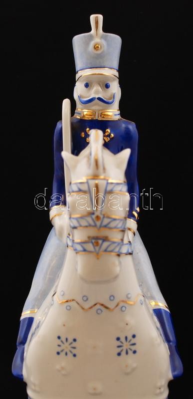 Hollóházi porcelán huszár, kézzel festett, jelzett, hibátlan, m: 27 cm