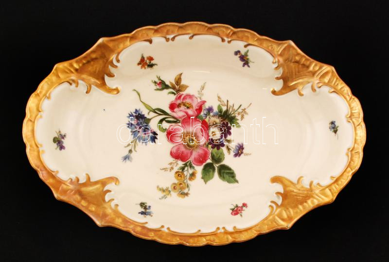 Lippelsdorf virágmintás asztali dísztál, kézzel festett, jelzett, hibá...