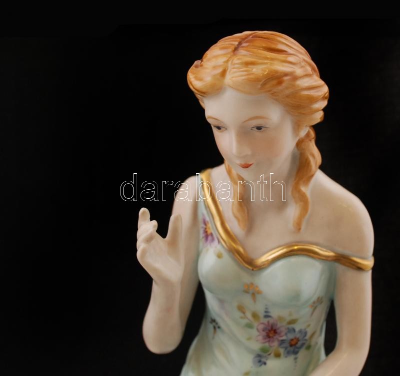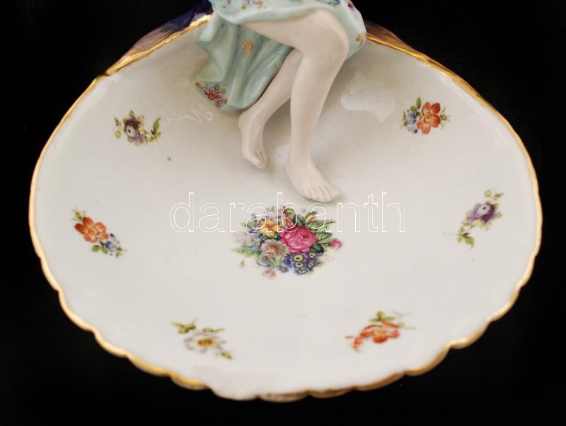 Virágos kagylós tál, peremén ülő lánykával, a tál szélén csorbával, ké...