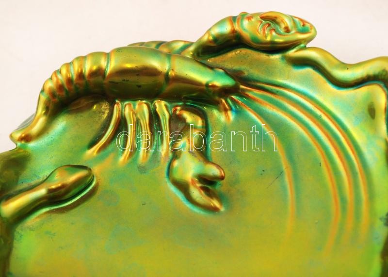 Zsolnay eozin mázas siklós rákos tál, jelzett, kis kopásnyomokkal, 14,...