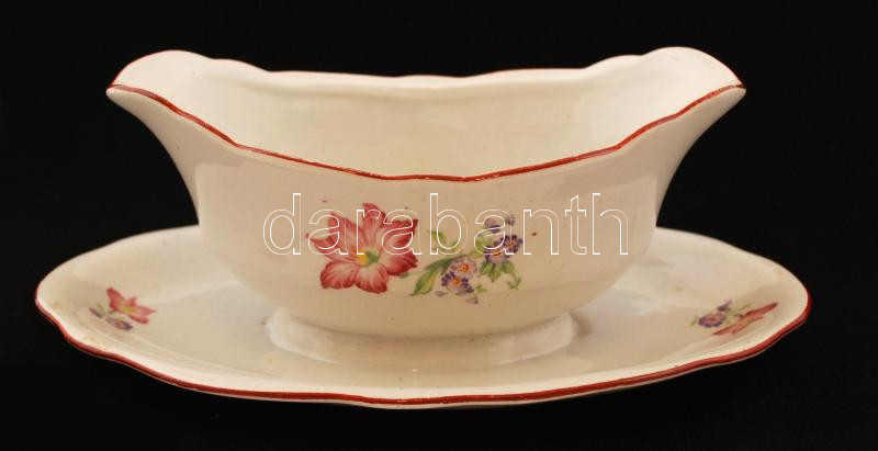Zsolnay porcelán virágmintás szószos tál, matricás, hibátlan, jelzett,...