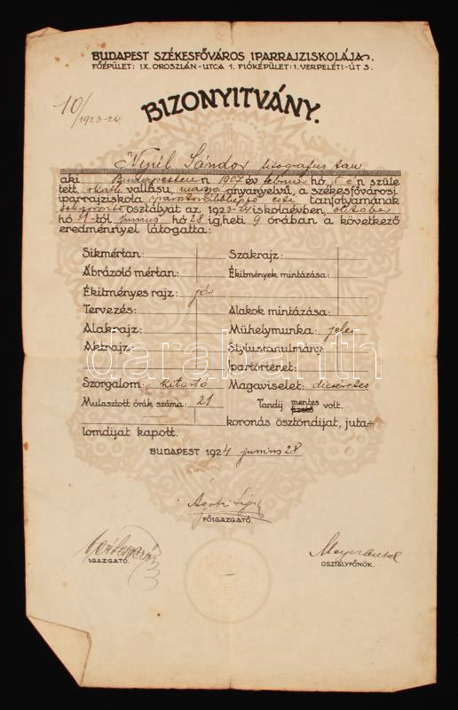 https://www.darabanth.com/en/270-Online-auction/270.0/Other-collectibles/Documents~300115/1924-Budapest-Szekesfovaros-Iparrajziskola-bizonyitvanya~II1245158