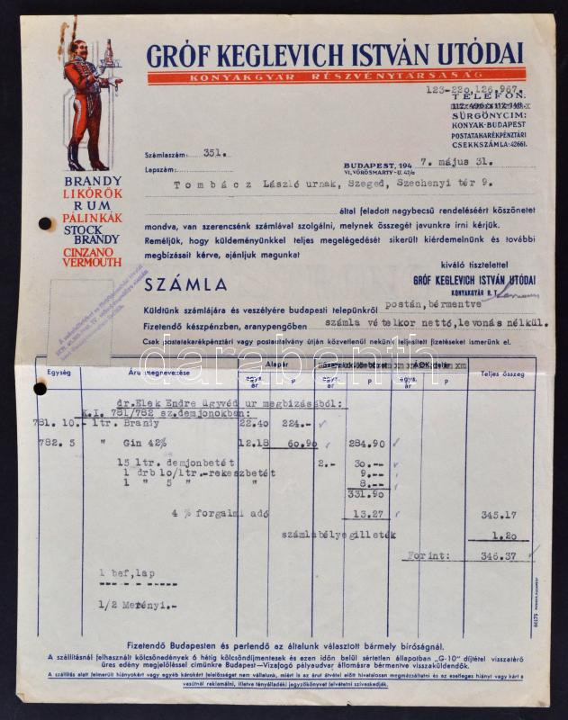 https://www.darabanth.com/en/270-Online-auction/270.0/Other-collectibles/Documents~300115/1947-Grof-Keglevich-Istvan-utodai-Konyakgyar-Rt-rajzos-szamla-kilyukasztva-29x22cm~II1361635