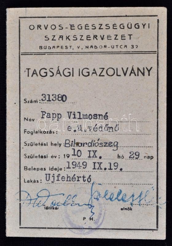 https://www.darabanth.com/en/270-Online-auction/270.0/Other-collectibles/Documents~300115/1949-Tagsagi-igazolvany-Orvosi-Egeszsegugyi-Szakszervezet-tagsagi-belyeggel-11x8cm~II1361702