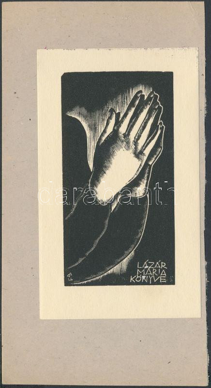 Buday György (1907-1990): Lázár Mária könyve, ex libris, fametszet, pa...