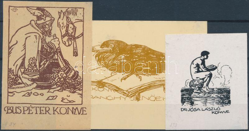 Haranghy Jenő (1894-1951): Ex libris tétel, klisé, papír, 3db, 9×6,5 c...