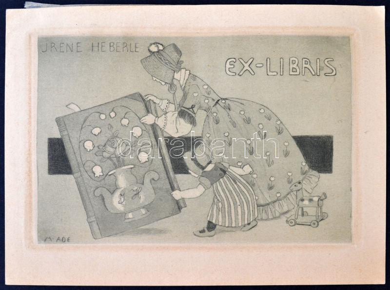 Mathilde Ade (1877-1953): Ex libris Jrene Heberle. Mélynyomás, papír, ...