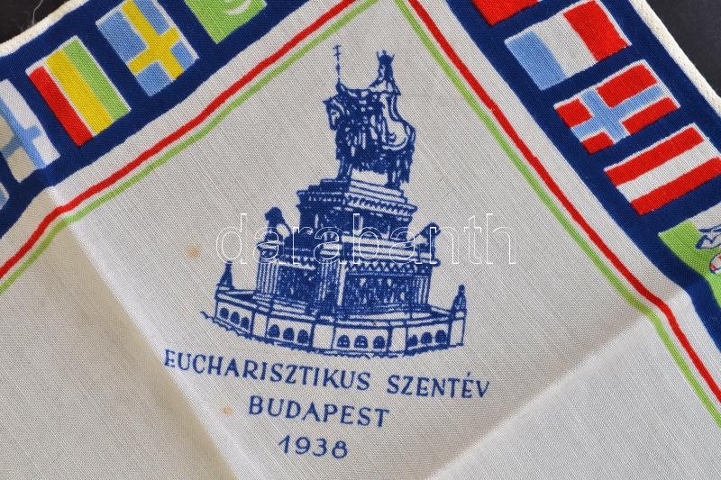 1938 Díszzsebkendő "Eucharisztikus szentév, Budapest" felirattal, 23x23cm