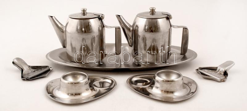 Vegyes reggeliző fém tétel, teázáshoz, főtt tojáshoz, 7db-os