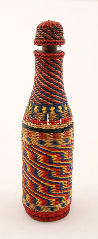 Műanyag fonatos üveg, dugóval, m: 21 cm.