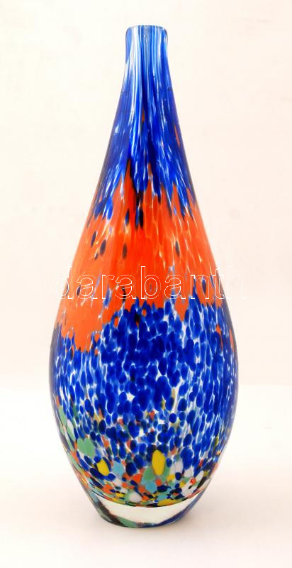 Muránói díszváza, több rétegű, formába fújt, anyagában színezett, hibátlan, jelzés nélkül, m:40 cm