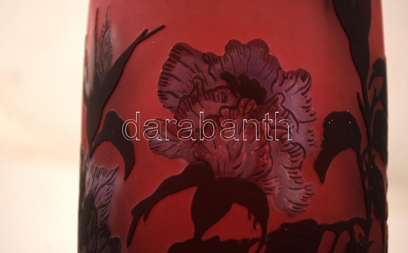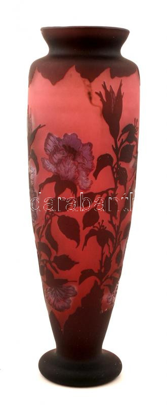 Tip Gallé üvegváza virágmintával, savmaratott, kétrétegű, m:37cm