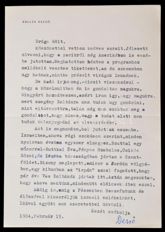 1984 Kellér Dezső levele Vas Zoltán (1903-1983) kommunista politikus, ...