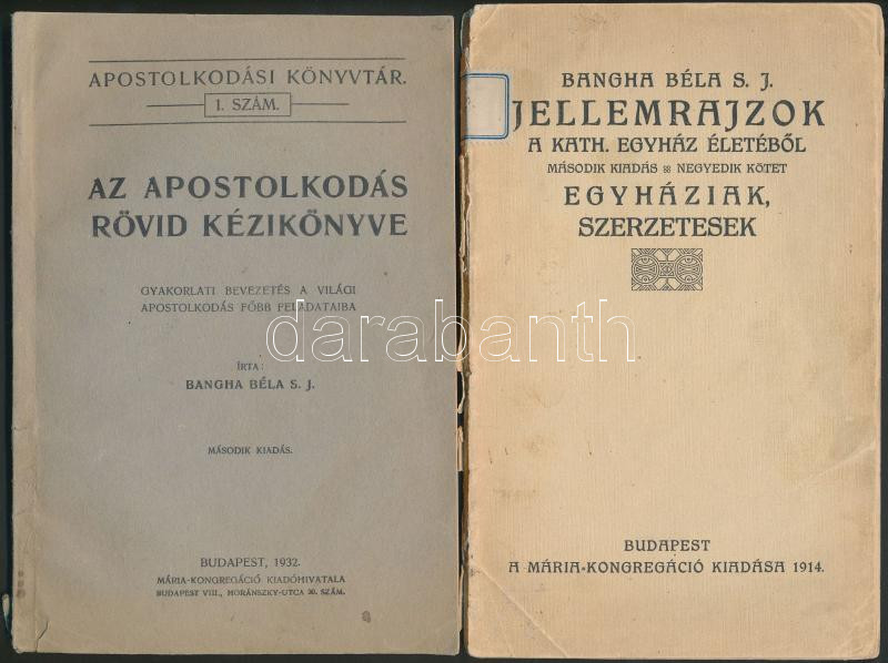 Bangha Béla kiadványai: Jellemrajzok a kath. egyház életéből; Az apostolkodás rövid kézikönyve, 2db, kissé visletes kiadói papír kötésben