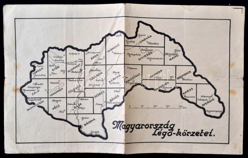 cca 1940 Magyarország "Légó" körzetei, hajtott térkép, 19x31cm